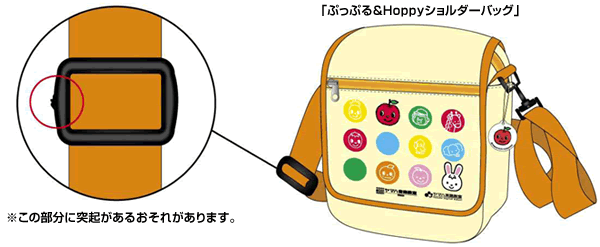 2010年の春~秋に実施いたしましたヤマハ音楽教室・ヤマハ英語教室のキャンペーン記念品として贈呈いたしました「ぷっぷる&Hoppyショルダーバッグ」(輸入元:オンワード商事(株))において、ベルトにつけられた部品の突起により、擦り傷を負うおそれがあることが判明しました。