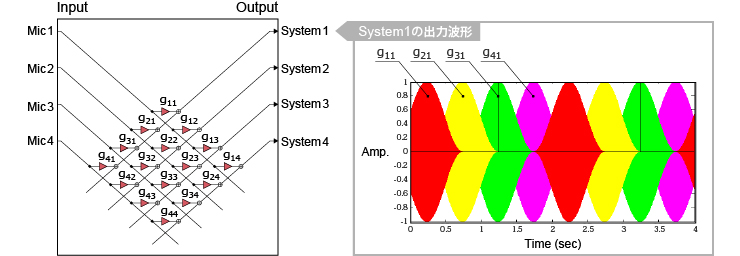 音響的フィードバックを基本としたシステムで大きな効果を得るためには、多くのエネルギーをフィードバックさせる必要があります。しかし、フィードバックさせるエネルギーが大きいほど、「ハウリング」に対して不安定となります。AFCでは「ハウリング」に対するシステムの安定性を確保するため、EMR(Electronic Microphone Rotator)と呼ばれる空間平均化技術を使用しています。