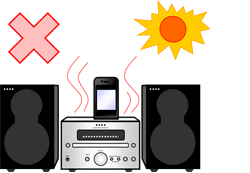 - 直射日光の当たる場所や、温度が異常に高くなる場所(暖房機のそばや車内など)