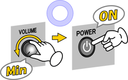 電源を入れる前や、再生を始める前には、音量(ボリューム)を最小にしてください。突然大きな音が出て、聴力に悪い影響を与えることがあります。