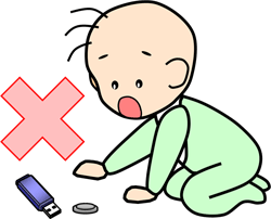 電池やUSBメモリーなどはお子様の手の届くところに置かないでください。お子様が誤って飲み込むおそれがあります。誤って飲み込んだ場合は、ただちに医師にご相談ください。