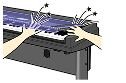 - 鍵盤楽器の鍵盤蓋(キーカバー)を開閉するときは、両手で静かに行い、途中で手を離さないでください。また、ご自分や周りの方、特にお子様が、鍵盤蓋(キーカバー)の端と本体の間で手や指をはさまないよう注意してください。