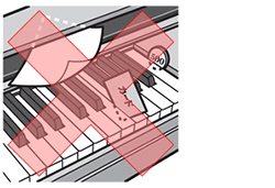 - グランドピアノの屋根の開閉は必ず大人が注意して行ってください。屋根は重いので手や指を挟むとけがをするおそれがあります。